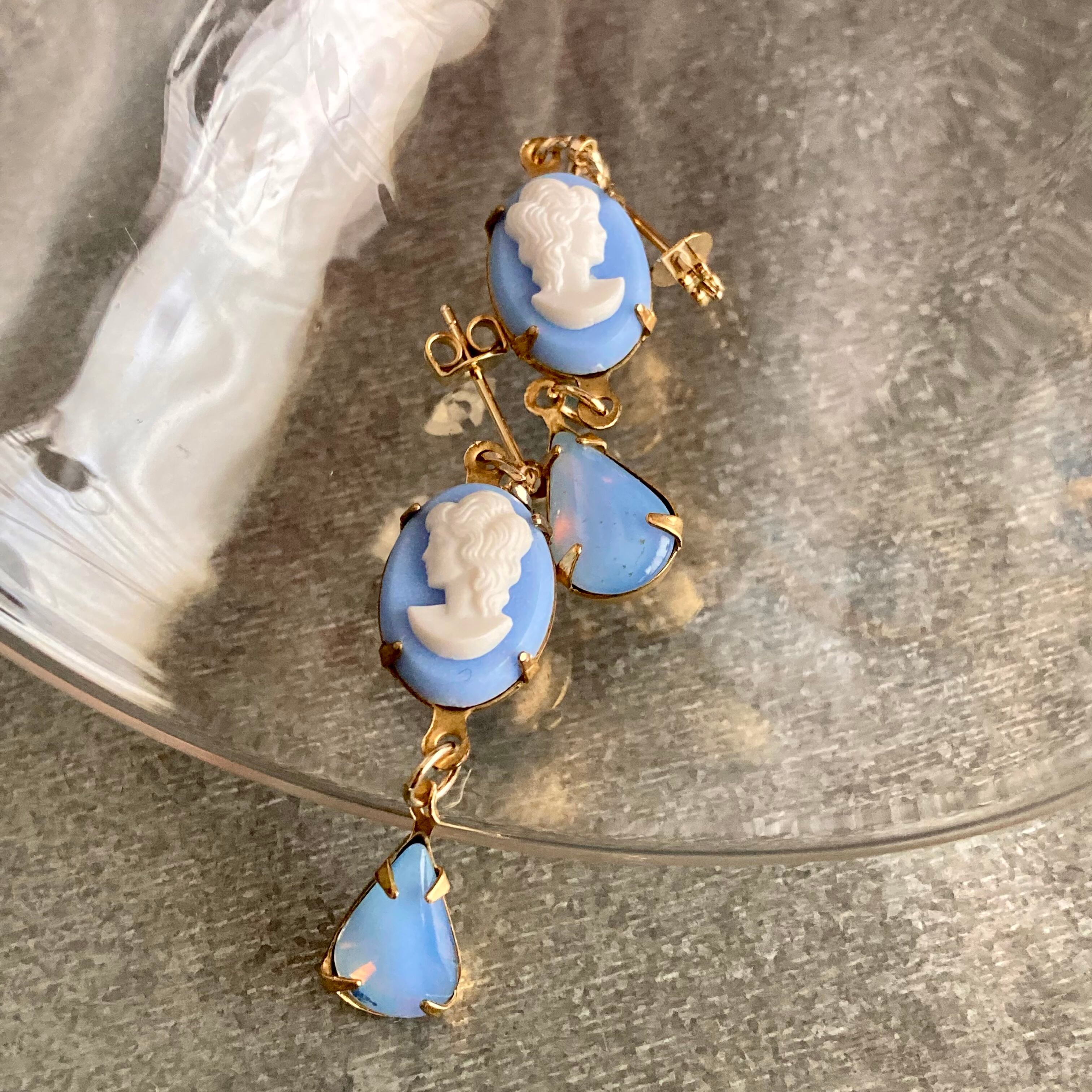 水色のベースに白プロフィールのカメオと水色のティアドロップ